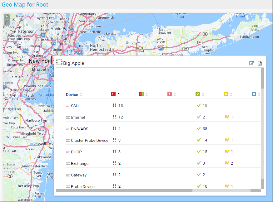 With the Geo Maps feature, you can visualize geographical information about monitored objects that are located at different sites worldwide on one page. You can display the location of probes, groups, and devices in a geographical map on the Overview tab of an object or in Maps.