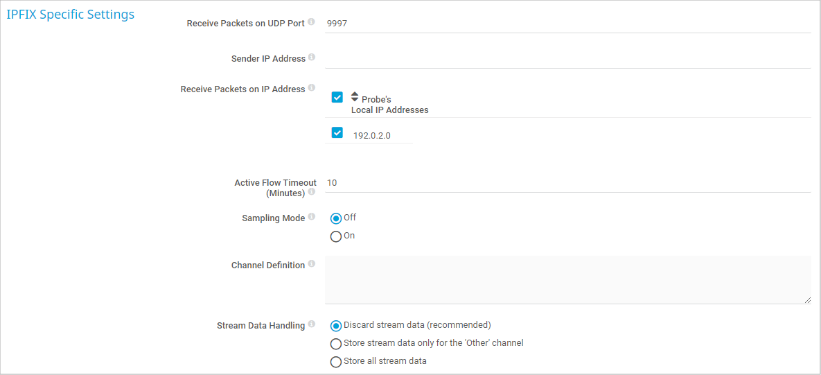 IP address of the sending device. Use this if you have several devices that send flow data on the same port, and you want to divide the traffic of each device into a different channel.