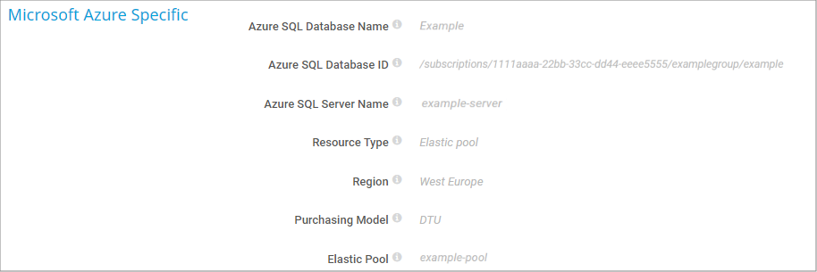 The Microsoft Azure SQL Database sensor monitors the metrics of an Azure SQL Database (single database or elastic pool) in a Microsoft Azure subscription.