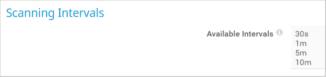 Define the scanning intervals available in the dropdown list of every object's settings. In the text field, enter one value in each line. Use s, m, h, and d to define seconds, minutes, hours, and days. By default, the following scanning intervals are available:
