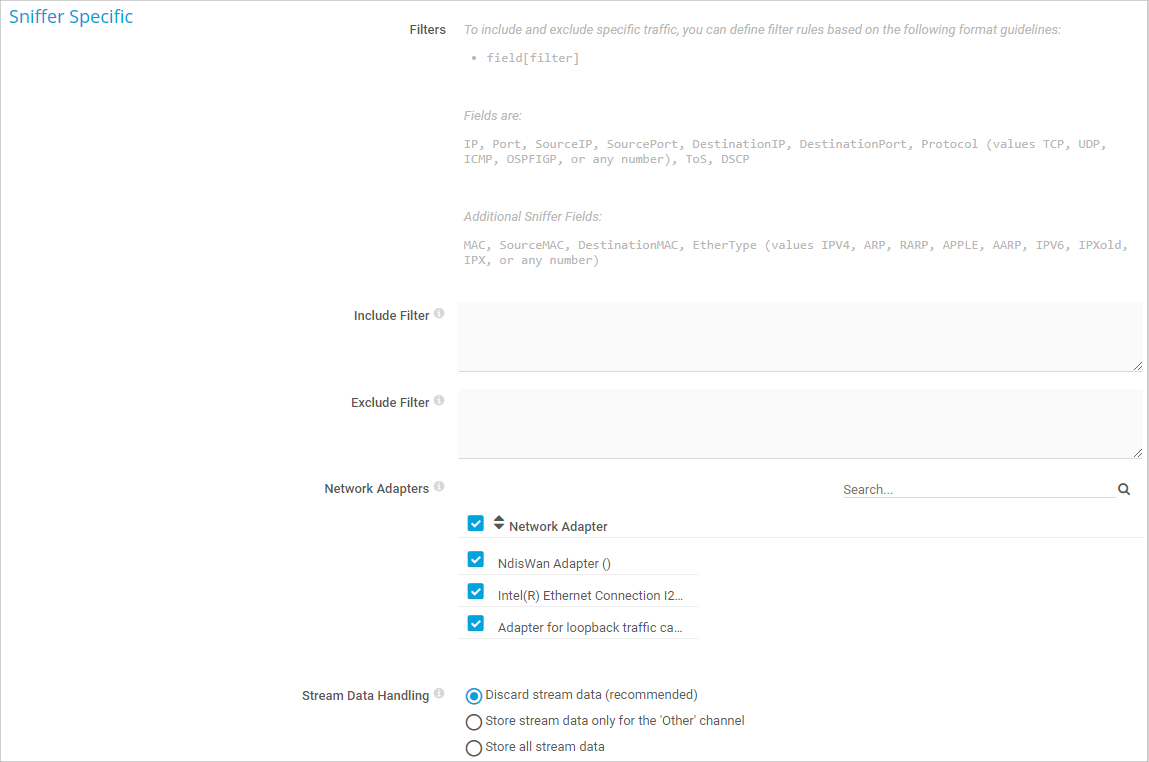The Packet Sniffer sensor monitors the headers of data packets that pass a local network card using a built-in packet sniffer. You can choose from predefined channels.
