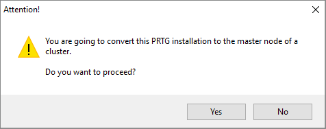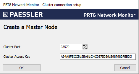 Click Create a Cluster to create a cluster. The current PRTG core server is then the master node of the cluster.