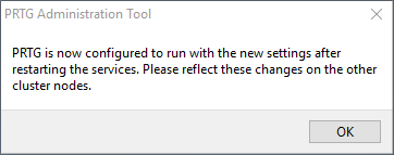 A dialog box appears where PRTG asks you to agree to restart the PRTG core server service. Click OK to proceed.