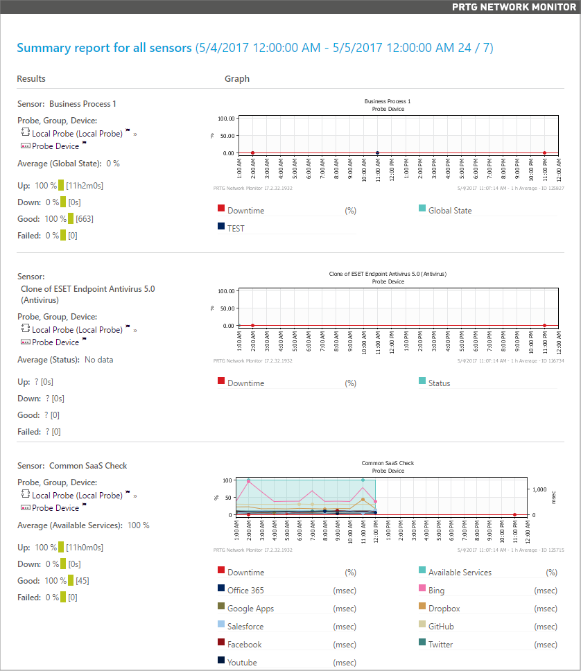 i_round_blueThe report above shows the report data for devices on a local probe. You can see graphs for the preceding week and data tables with numeric results.