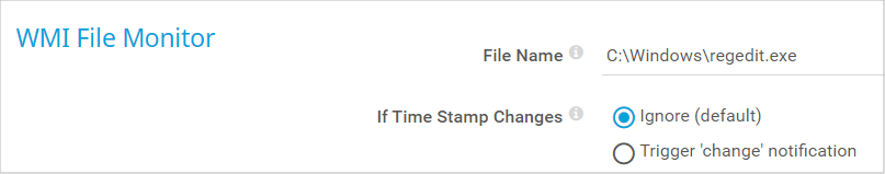 The WMI File sensor monitors a file via Windows Management Instrumentation (WMI).